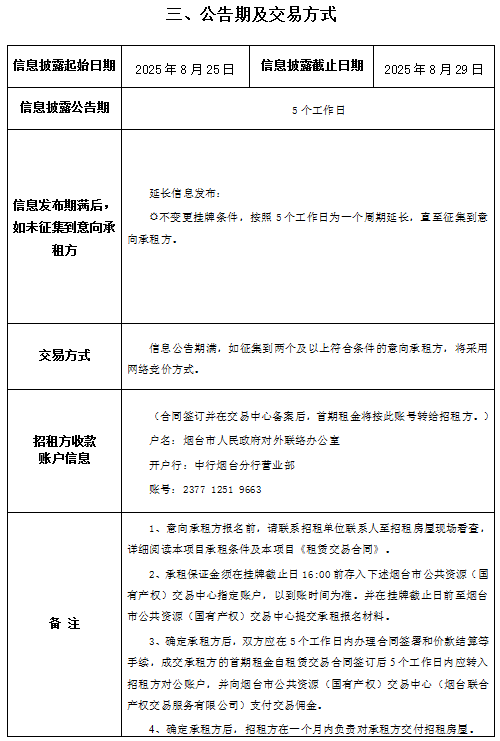 芝罘區(qū)北馬路240號大樓部分1層及2-3層招租交易公告
